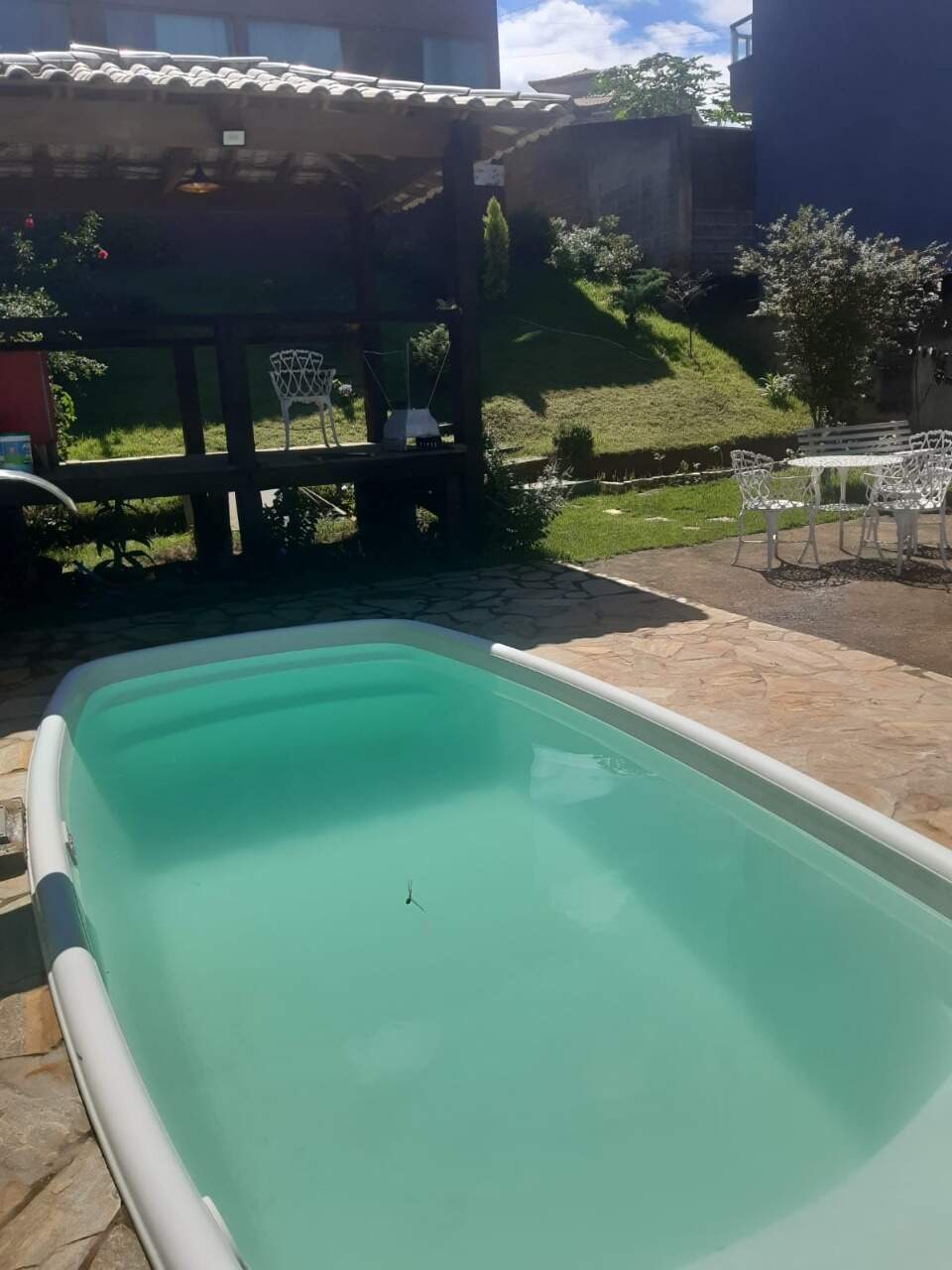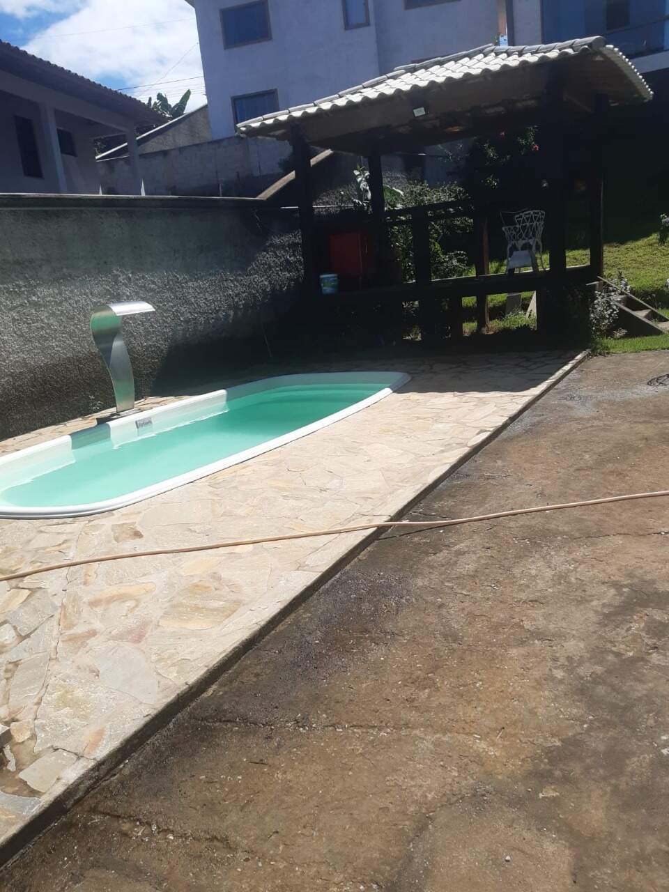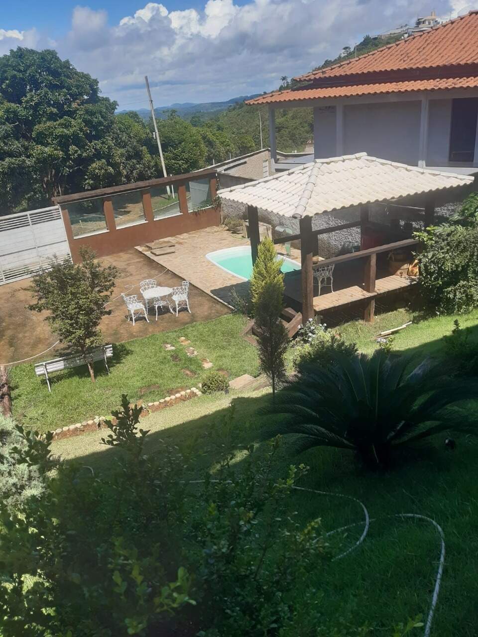 O imóvel possui 03 quartos, sala, cozinha, copa, 02 banheiros sociais, área de piscina, mais 02 andares em fase de acabamento com outra sala, suíte, varanda ao redor de toda a casa e garagem para 03 carros.