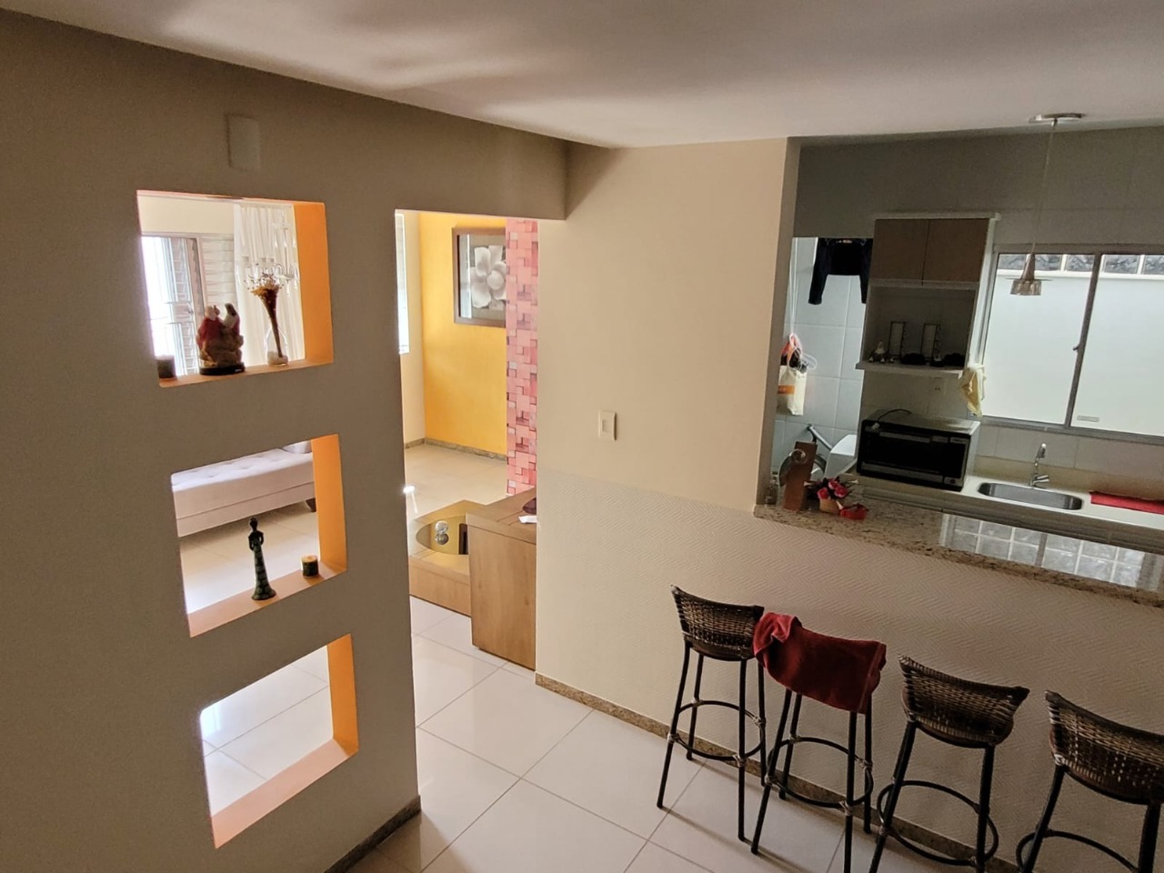 - Cozinha americana integrada à sala e copa, proporcionando praticidade;