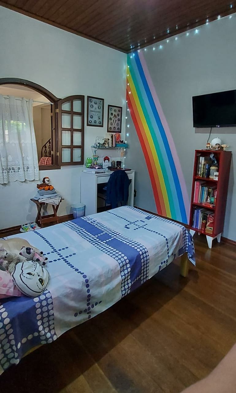 4 quartos espaçosos, 3 banheiros bem distribuídos, sala, cozinha ampla para reunir a família, área gourmet com fogão à lenha,porão, garagem coberta com portão eletrônico e sistema de segurança com 3 câmeras e interfone..